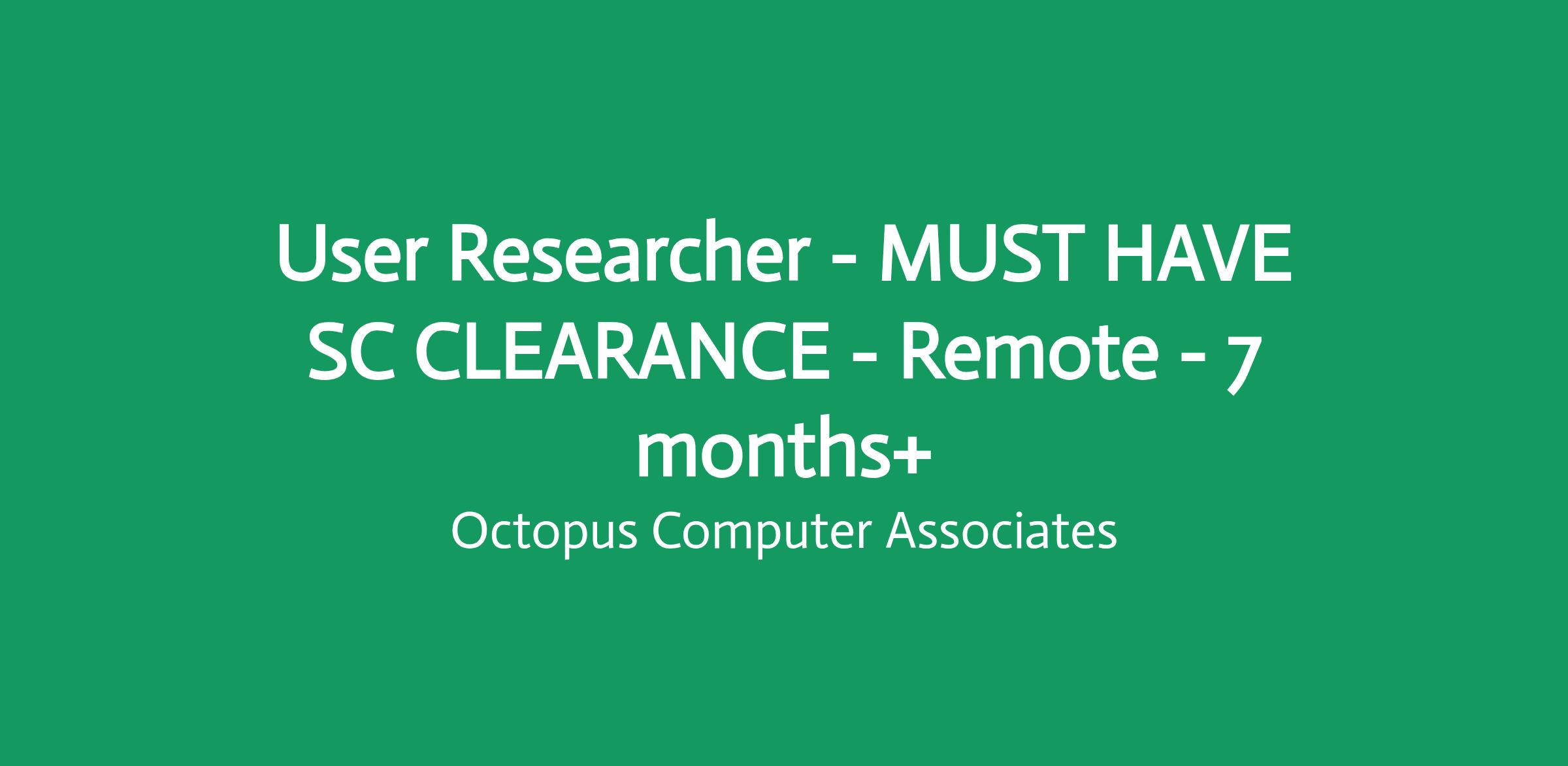 User Researcher - MUST HAVE SC CLEARANCE - Remote - 7 months+/RATE: £525 per day inside IR35