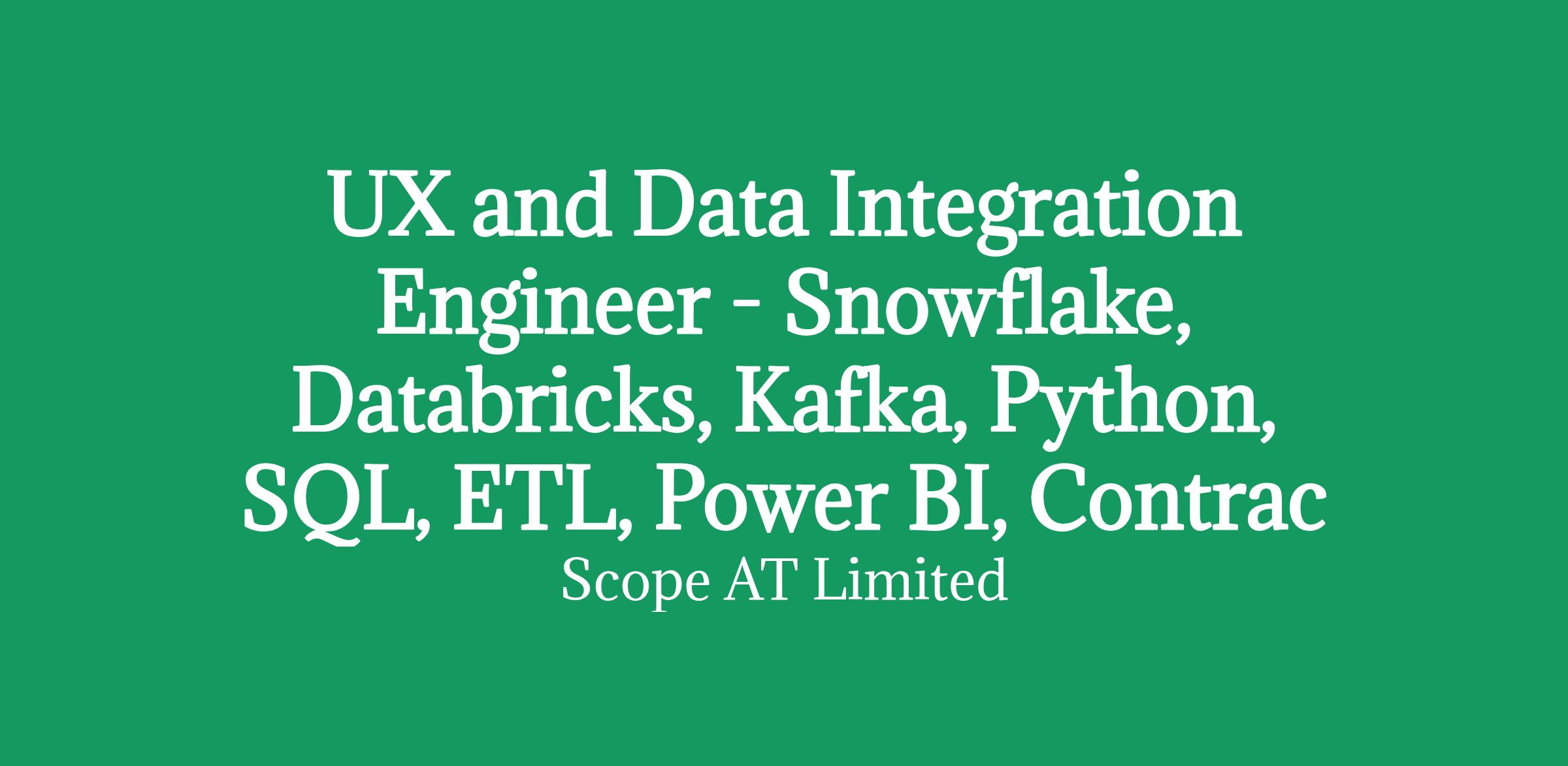 Investment Banking - UX and Data Integration Engineer - Snowflake, Databricks, Kafka, Python, SQL, ETL, Power BI, Contract