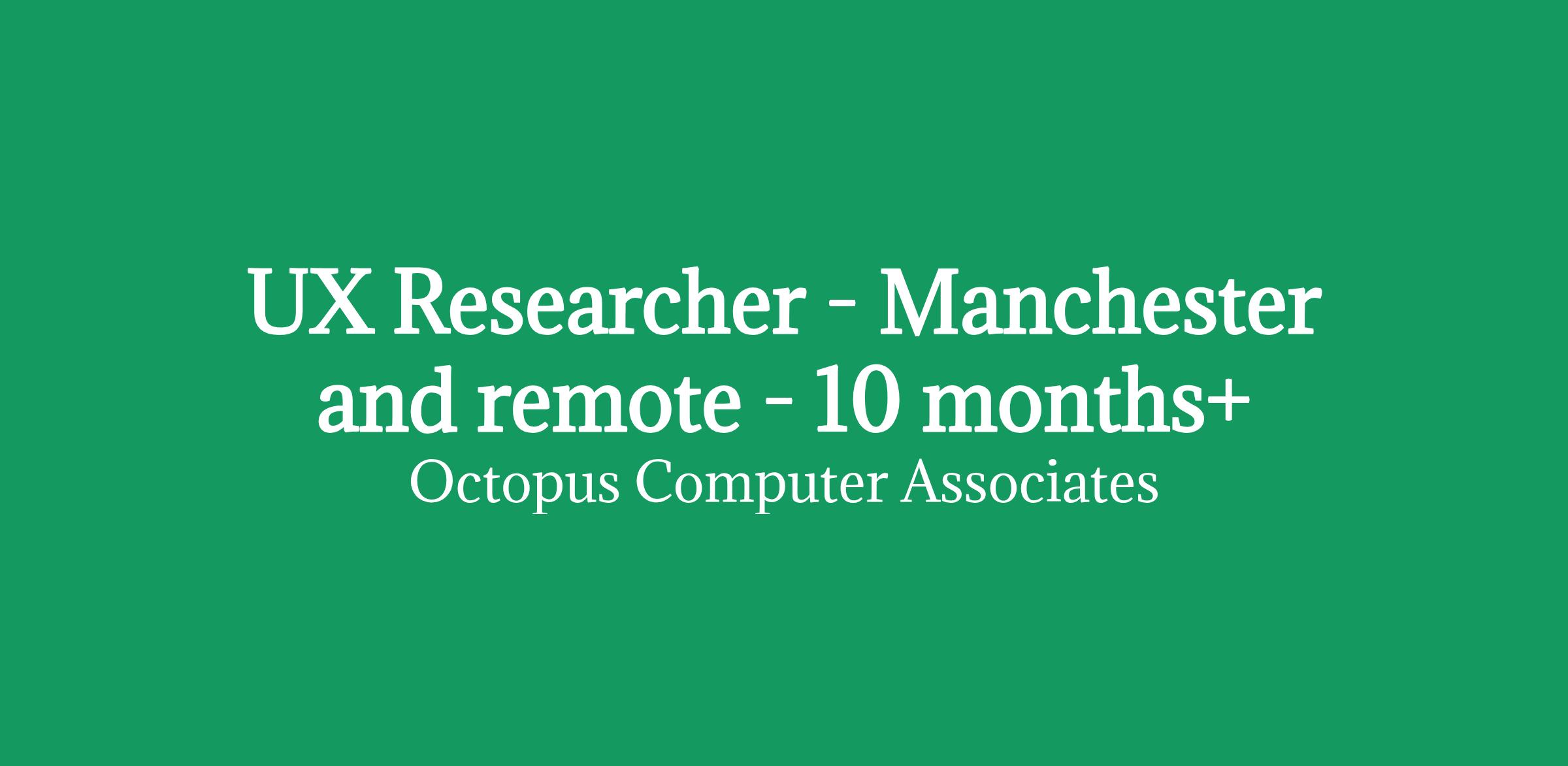 UX Researcher - Manchester and remote - 10 months+/RATE: £393 per day inside IR35