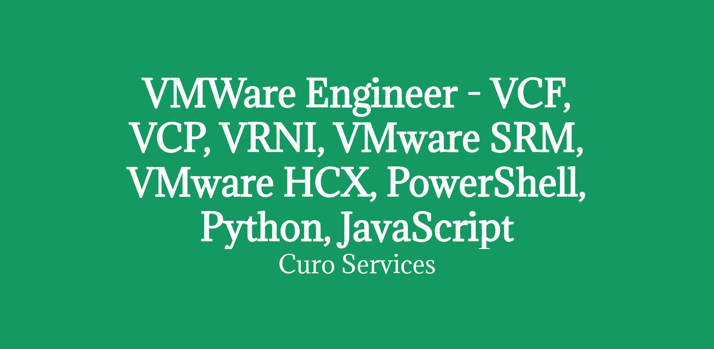 VMWare Engineer - VCF, VCP, VRNI, VMware SRM, VMware HCX, PowerShell, Python, JavaScript