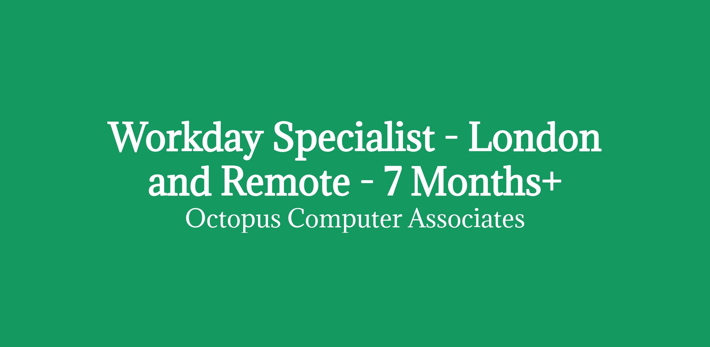Workday Specialist - London and Remote - £437.50 per day INSIDE IR35 - 7 months +